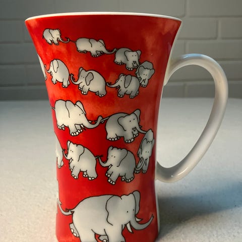 Myyntiin iso noin puolen litran tölkin kokoinen kahvimuki. Vähän erikoisempi malli. Pinnoite hieman krakeloitunut mutta täysin ehjä ja siisti muuten. Hinta 12€ löytyy Salosta MMM