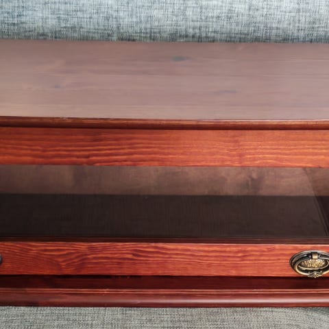 Myydään tilanpuutteen vuoksi seinähylly. Lasiovi aukeaa ylöspäin.