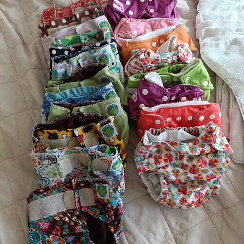 Kolme s-kokoista Hahtuvahullun taskuvaippaa. Yhden sisäpinnalla selkeää tummumaa, resorit nukkaantuneet. Värit oikeat ekassa kuvassa. Tarrat pitää ja kuminauhoissa joustoa ainakin jonkin verran (vasta pesty ja testattu). Kaikki yht. 12 e.