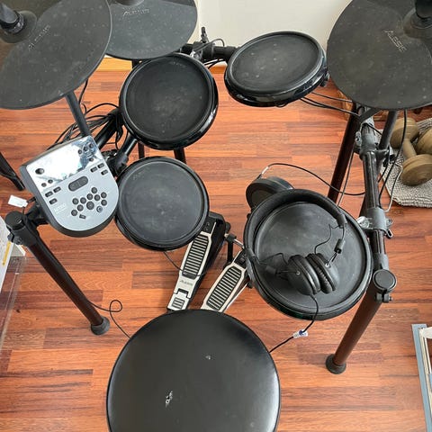 Sähkörummut, vaatii korjausta. Toinen poljin rikki ja muutenkin jotain pikkuvikoja.