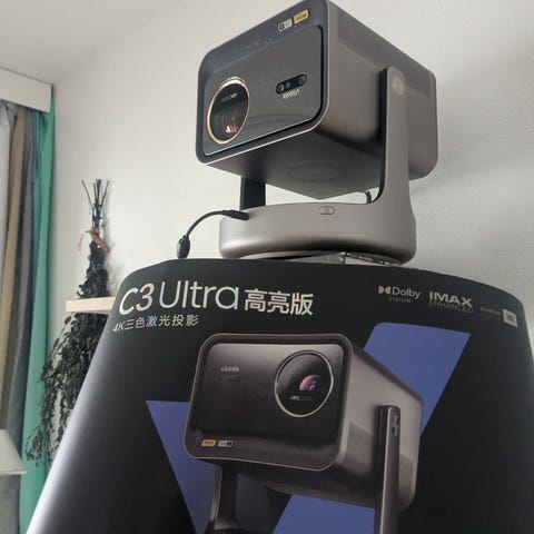 Projektorissa on hyvä akkukesto (n. 2,5 h) ja sitä voi käyttää samalla kun se on latauksessa, eli elokuva ei katkea kesken. Akku myös latautuu nopeasti.