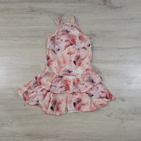 Violetti gugguun mekko, koko 122. Värit hieman haalenneet alkuperäisestä, mutta tahroja tai reikiä en löytänyt