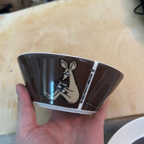 Arabia Muumi muki, ruskea. Myyn myös erikseen settinä jossa mukana kulho ja lautanen.