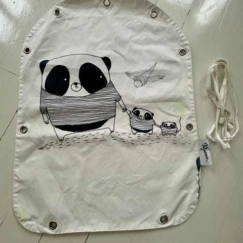 Myydään kuvan kaksipuoleinen vaunuverho. Toisella puolella vaaleansinisellä pohjalla metsäinen teema ja toisella puolella tummansinisellä pohjalla karhun kuvia. Ostettu 2023 ja ollut vähällä käytöllä. Koko 51x44cm. Mukana tulee renkaat joilla voi kiinnittää vaunuun. Vaunuja joissa tämä verho on ollut kiinni ei ole säilytetty ulkona, vaan aina sisällä, joten tämäkin on yhtälailla ollut sisällä.