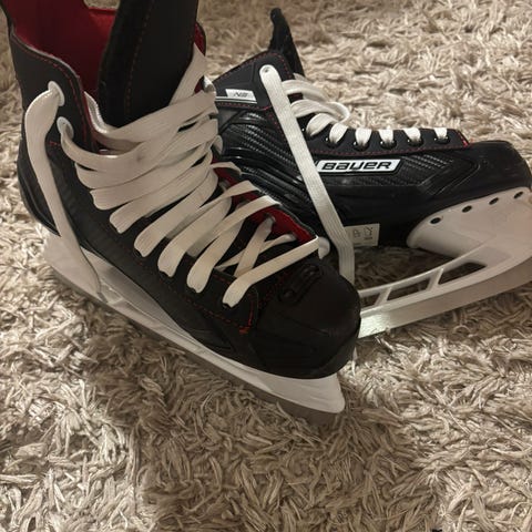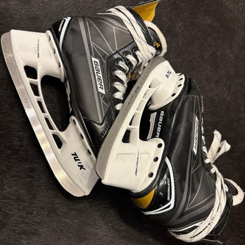 Bauer hokkarit lapsille, koko EU 37, 5. Väriltään musta-valkoinen, nauhakiinnitys ja korkea varsi tukevat nilkkaa. Soveltuvat jääkiekkoharjoitteluun ja yleiseen luisteluun lapsille, joiden kengänkoko on noin 37.