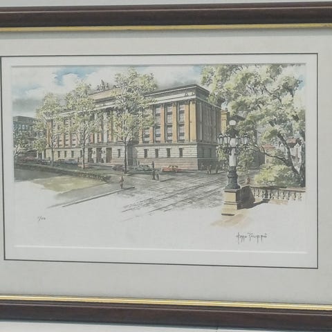Kimmo Pälikön signeerattu taidegrafiikka, jossa aiheena Nokian Kaapelitehdas Salmisaaressa. Teoksessa on kuvattuna kaupunkimaisema teollisuus- ja katuympäristöineen. Takapuolella teksti: "Nokian Kaapelitehdas, Salmisaari. Arkkitehti Wäinö Palmqvist. Rakennettu 1939–1955. Mikonpäivä-juhla 28.9.1989" sekä Nokia Data -logo. Teos on painettu vaalealle paperille ja se on passepartout’n ympäröimä, valmis kehystettäväksi tai esille laitettavaksi.
