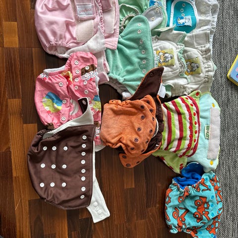 Myyn kestovaippapaketin, joka koostuu useista Milovia PUL -vaippasuojuksista (8x), yhdestä Totsbots-vaippasuojuksesta ja kolmesta Flip-vaippasuojuksesta. Mukana tulee myös Myllymuksut-sisävaippa ja erilaisia bambusta, hampusta ja polyesteristä valmistettuja täytteitä. Joidenkin vaippojen lahkeensuissa oleva kuminauha on melko venynyt. Savuttomasta ja lemmikittömästä kodista.