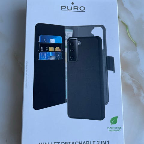 Samsung puhelimen kuoret sininen lompakkokotelo. Kotelossa on etukansi, korttipaikkoja ja setelitasku. Sisällä on puhelinpidike, johon puhelin kiinnitetään. Kansi sulkeutuu läpällä. Väri on sininen. Sopii Samsung Galaxy S21+ puhelimelle