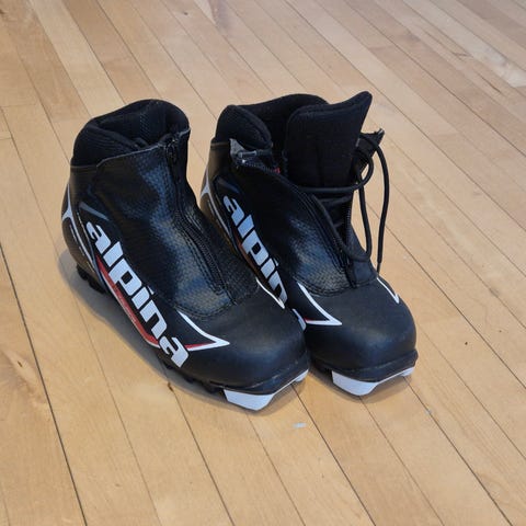 Myyntiin Alpina lasten hiihtomonot. Tulkitsen kokolapusta, että ovat kokoa 34. Saa ehdottomasti sovittaa ostettaessa. Siistit.