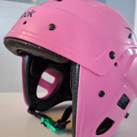 Reebok lasten kypärä, koko 50–58 cm. Väri pinkki. Kypärässä kova ulkokuori ja sisäpuolella vaimentava EPS-vaahtorakenne. Sivuilla ja päällä ilmanvaihtoaukot. Säädettävä leukahihna pikalukolla. Sertifioitu standardin EN 1080 mukaan. Soveltuu nuorille lapsille esimerkiksi pyöräilyyn ja muuhun vastaavaan käyttöön, jossa on pään iskuvammojen riski.
