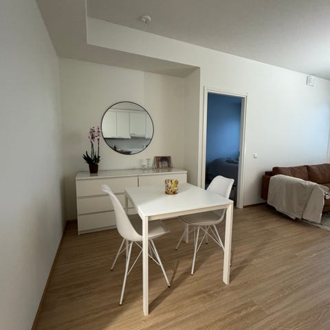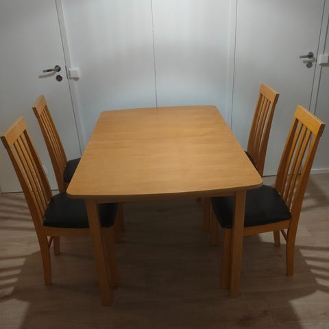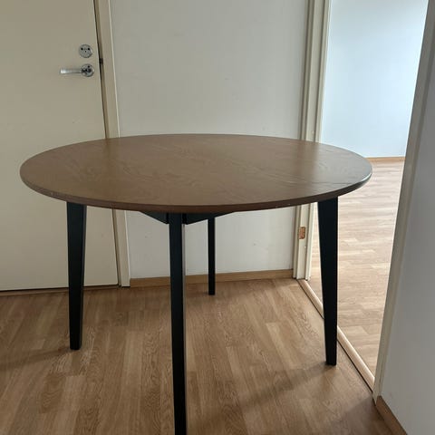 Myydään kuvan ruokapöytä. Tuolit ei tule mukaan. Halkaisija 1 m. Kunto hyvä. Kissatalous ja nouto Vesalasta asap.