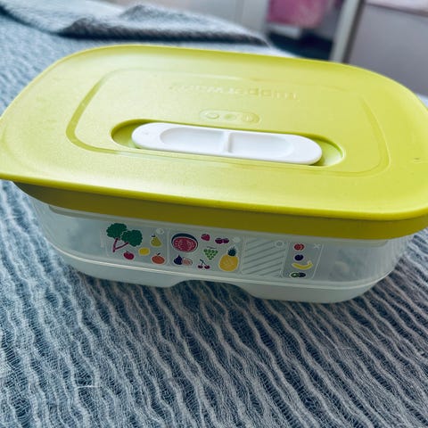 Hedelmien ja vihannesten optimaaliseen säilytykseen ja pidentää niiden säilyvyysaikaa. Kannessaon venttiilit, jotka voi säätää kolmeen eri asentoon, joten hapen määrän voi säätää säilytettävän hedelmä- ja vihannestyypin mukaan. Venttiilien säätöohjeet on painettu muovimateriaaliin, joten on helppoa nähdä, mitä venttiilisäätöä käytetään erityyppisille hedelmille ja vihanneksille. Tuotteeen pohjassa on urat, mikä varmistaa paremman ilmakierron astiassa, eikä mahdollinen tiivistynyt vesi ole kosketuksissa sisällön kanssa. Pehmeä kansi on helppo avata ja sulkea.