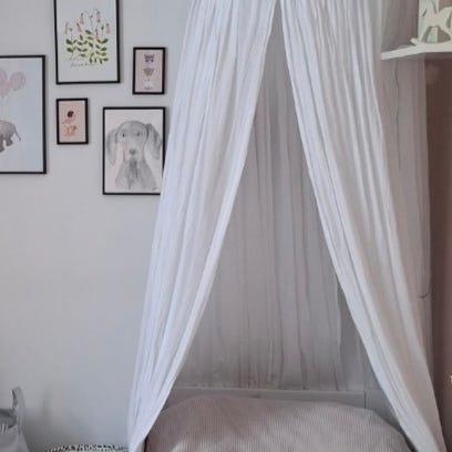 Hennon vaaleanpunainen vuodekatos puuvillaa. Korkeus 240cm. Metallinen irrotettava rengas pitää katoksen hyvin ryhdissä. Ei moitteita kunnossa.