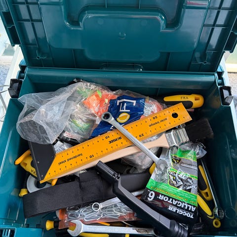 Sisältää kaksi irrotettavaa sivuosaa erilaisilla työkalutaskuilla