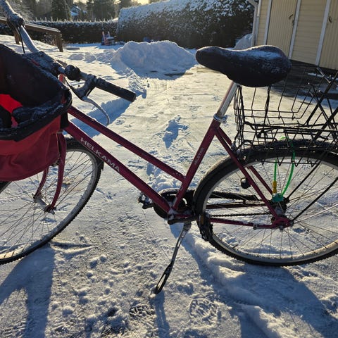Myyn äitini vanhan pyörän pois. En tiedä koko jutuista mitään, tuu katsomaan. Toimii niinku pitää ja renkaat ehjät. Avain lukkoon hukassa. Normaalia kulumaa tän ikäses pyöräs on.
