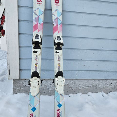 Lasten laskettelusukset integroiduilla siteillä. Suksissa on vaaleapohjainen kuviointi sinisillä ja vaaleanpunaisilla raidoilla sekä mustat pohjat. Sopivat rinteessä laskemiseen aloitteleville tai hieman edistyneemmille lapsille. Sukset myydään siteiden kanssa valmiina käyttöön.