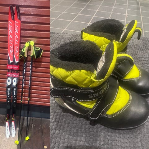 Sukset Atomic 130 cm sns - profiilin siteellä, sauvat Apollo Rex 100 cm. Monot Salomon 34 sns. Monoiksi voi vaihtoehtoisesti ottaa koon 32 / 33 tai 35 monot.