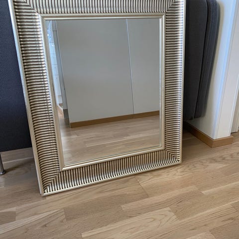 Peili hopeanvärisillä kehyksillä. Erittäin hyvässä kunnossa. Mitat 101 x 43 cm