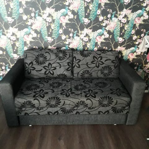 Brandss Harmaa vuodesohva, vähälle käytölle jäänyt. Painava joten omat kantajat mukaan