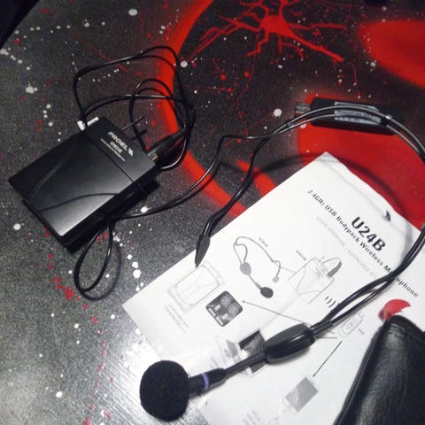 Pakettiin kuuluu 3.5mm ja usd c johdot kaksi mikrofonia vastaan otin säilytys kotelo suojapussi
