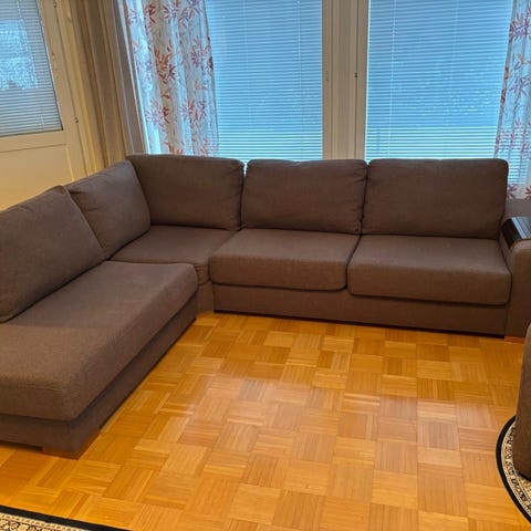 Pohjanmaan Domino moduulisohva. Voi käyttää suorana tai kulmasohvana. Ehjä ja siisti. Kankaat hieman kuluneet. Lämpimän punainen, aurinko vääristää värejä kuvissa. Leveydet: keskiosa 160, päätyosa 88, kulmaosa 100. Syvyys 86, korkeus 80 cm. Juuri pesty ja putsattu. Hinta 140 €. Kuljetus Uudellamaalla onnistuu korvausta vastaan.