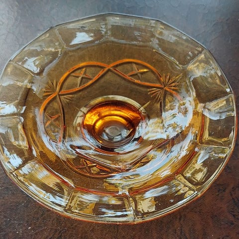 Paksua ja painavaa puristelasia, näyttävä timantti- ja sädekuviointi.