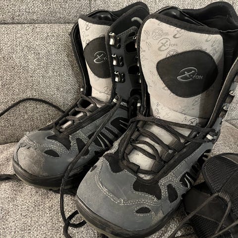 Boycot lumilautakengät koko 39. Nauhakiinnitys. Paljon käytetyt ja kulumaa takana, kuitenkin kelvot käyttöön ja muuten ehjät!