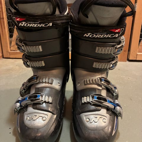 Alpina XTHOR laskettelumonot. Koko 335mm 44-45.Monossa neljä säädettävää solkea ja leveä tarrakiristys varressa. Kuoressa merkinnät flex-säädöistä (mm. 100 ja 80). Kuvissa näkyy yksityiskohtia kuoren rakenteesta ja kulumajäljistä.