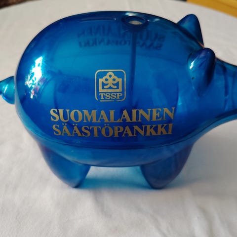 Paavo Pesusieni -aiheinen säästöpossu, jossa kolikkoaukko ylhäällä ja irrotettava tulppa pohjassa kolikoiden tyhjentämistä varten. Sopii esimerkiksi lasten huoneen koristeeksi ja rahansäästöön.