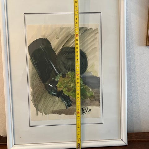 Taulun mitat näkyy kuvissa. Kehykset tosi hyvässä kunnossa eli voi ottaa uusiokäyttöön jos kuva ei miellytä.