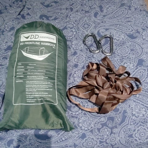 DD Hammocks Underblanket on riippumattoon kiinnitettävä aluspeite, joka parantaa lämmöneristystä ulkona nukuttaessa. Muutamia kertoja käytetty, täysin ehjä ei reikiä eikä haise. Paino pussin kanssa 1.4kg.
