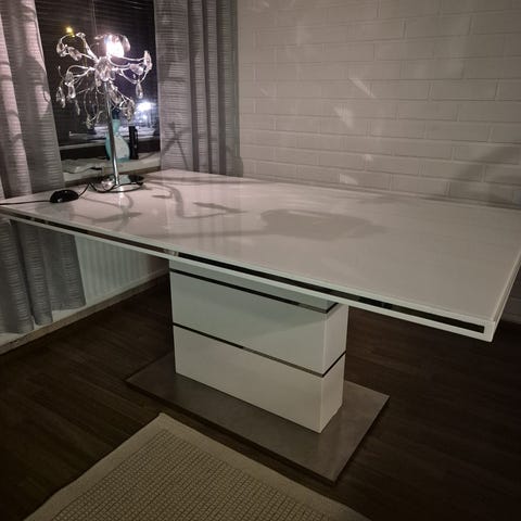 Ruokapöytä + kuusi tuolia.