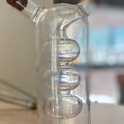 Lasinen pullo, hyvä kunto. Korkeus 17 cm ja halkaisija alhaalta 5 cm. Alumiininen korkki.