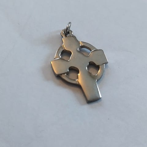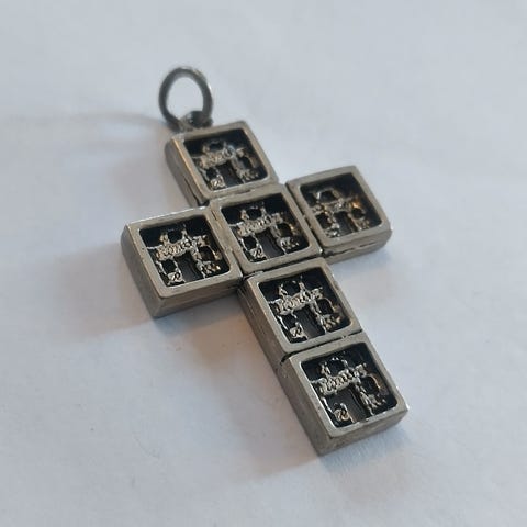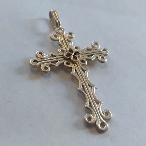 Kaunis hopeanvärinen risti. Korkeus 26mm, leveys 14mm. Nouto Hyvinkää/Mäntsälä tai postitus.