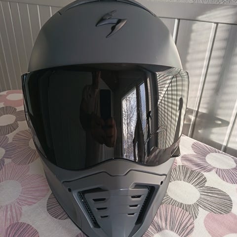 Scorpion moottoripyöräkypärä, jossa valkoinen kuori ja kirkas visiiri. Mukana erillinen tummennettu/peilattu lisävisiiri. Kypärässä täyskypärämalli, pehmustettu sisusta ja leukahihna pikalukituksella. Soveltuu moottoripyörä- tai mopokäyttöön käyttäjän koon ja vaatimusten mukaan. Tosi vähän käytetty. Koko S
