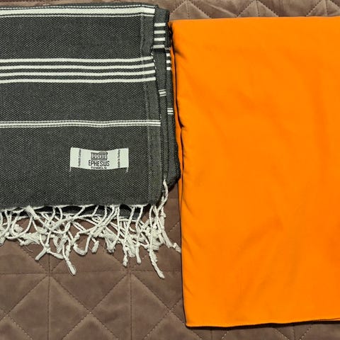 Kolmen setti pikkupyyhkeitä. Pesty pesukoneessa, muutoin eivät ole olleet ollenkaan käytössä.