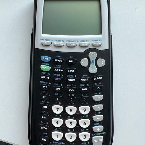 Toimiva Texas Instruments värinäytöllinen graafinen laskin, ollut aikoinaan itsellä lukiossa käytössä siksi kannessa jäljet nimitarrasta. Näitä myynnissä käytettynä mitä katsoin niin 50-110e. Uutenahan nämä ovat ~180e ja ylöspäin. En osannut tyhjentää laskuhistoriaa niin jotain omia aikaisempia laskutoimituksia löytyy.