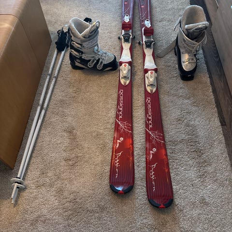 Head laskettelusukset siteillä ja naisten laskettelumonot sekä sauvat