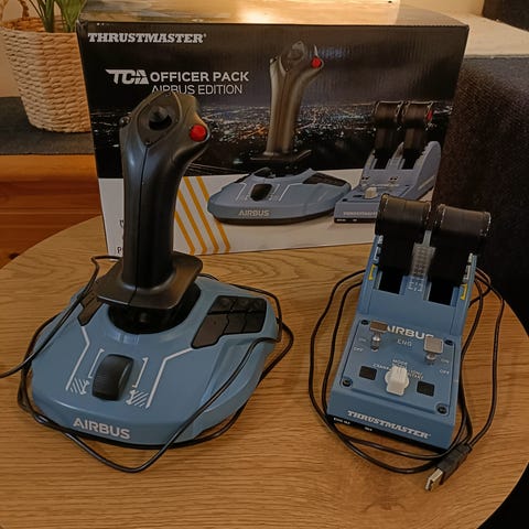 Ergonomiset replikat Airbusin maailmankuulusta sivuohjaimesta ja tehovipuyksiköstä. Molempikätinen peliohjain vaihdettavilla moduuleilla sisältää magneettiteknologiaa, sisäänrakennetun matkustajakonetoiminnon sekä replikapainikkeet ja muut kontrollit.