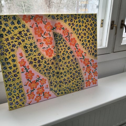 Takana metallilenkki ripustusta varten. Koko n. 80x120 cm