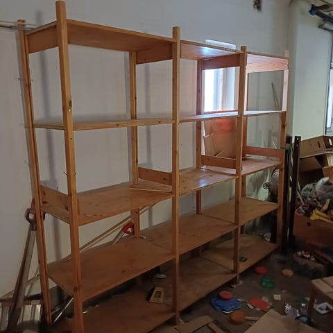 3 kpl hyväkuntoisia tukevia teräshyllyjä.
