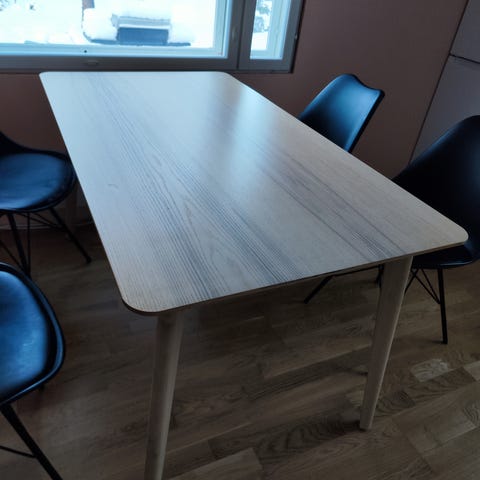 Ikean Lisabo pöytä saarniviilu koko 140x78 cm. Nouto Järvenpäästä. Toisessa kuvassa olevat tuolit eivät kuulu kauppaan.