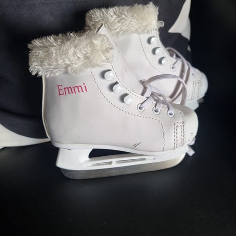 Myydään Emmi -lasten luistimet, koko 26. Valkoinen osa on hieman likainen, mutta muuten luistimet ovat hyvässä kunnossa.
