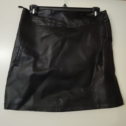 Uuden veroinen musta Vilan tekonahkahame, vyötärö 45 cm x2, vyötärö helma 56 cm, takana vetoketju ja pieni halkio, pystyy hyvin istua materiaali joustaa
