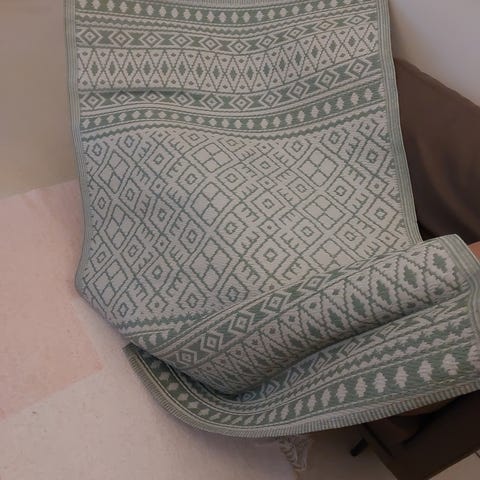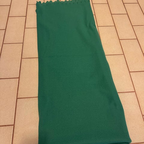 Vihreä kuviollinen fleecehuopa. Koko noin 140cmx180cm.