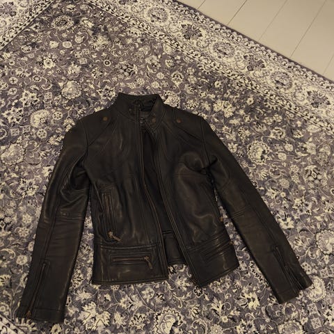 Musta S -kokoinen naisten nahkatakki