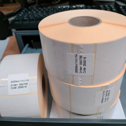 Kustomoituja mustavalkoisia lämpötulostettuja tarroja ostajan toiveen mukaan.