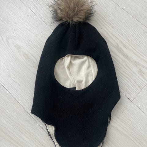 Hyväkuntoinen lasten kypärämyssy/pipo, isolla tupsulla. Koko S/M. Väri kaunis vaalea beige. Ei hajuja eikä tahroja, pesty aina villanpesuaineella. On ollut käytössä 1-3-vuotiaana, eli pitkäikäinen. Ei ole pureskelu leuan kohdalta, puhdas ja ehjä.