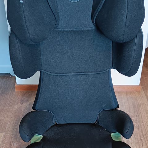 Cybex turvaistuin, 9-18 kg. Musta istuin, jossa säädettävä selkänoja ja sivutörmäyssuojaa tarjoavat sivutuet. Istuimessa on vyönohjaimet auton turvavyön käyttöä varten. Päällinen on irrotettavissa pesua varten. Istuin asennetaan isofixillä.
