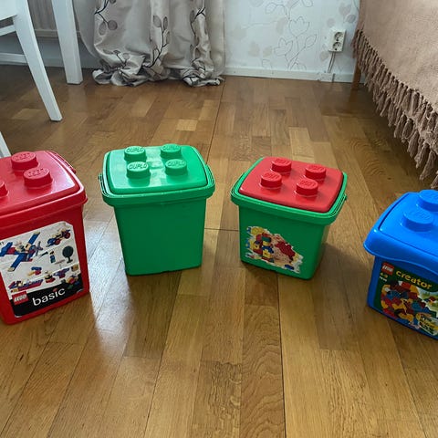 Leikeissä mukana olleet sekalainen setti legoja ja säilytyslaatikot